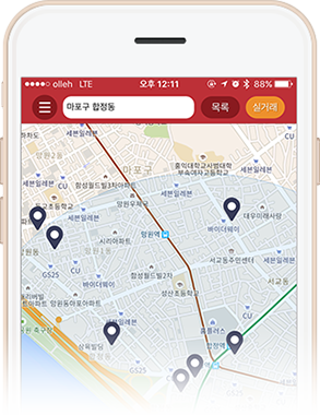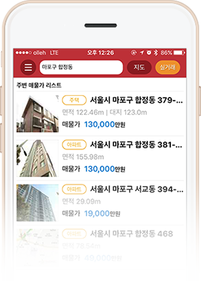 지도 위로 실거래가, 매물 등지역과 물건별로 간편한 검색!